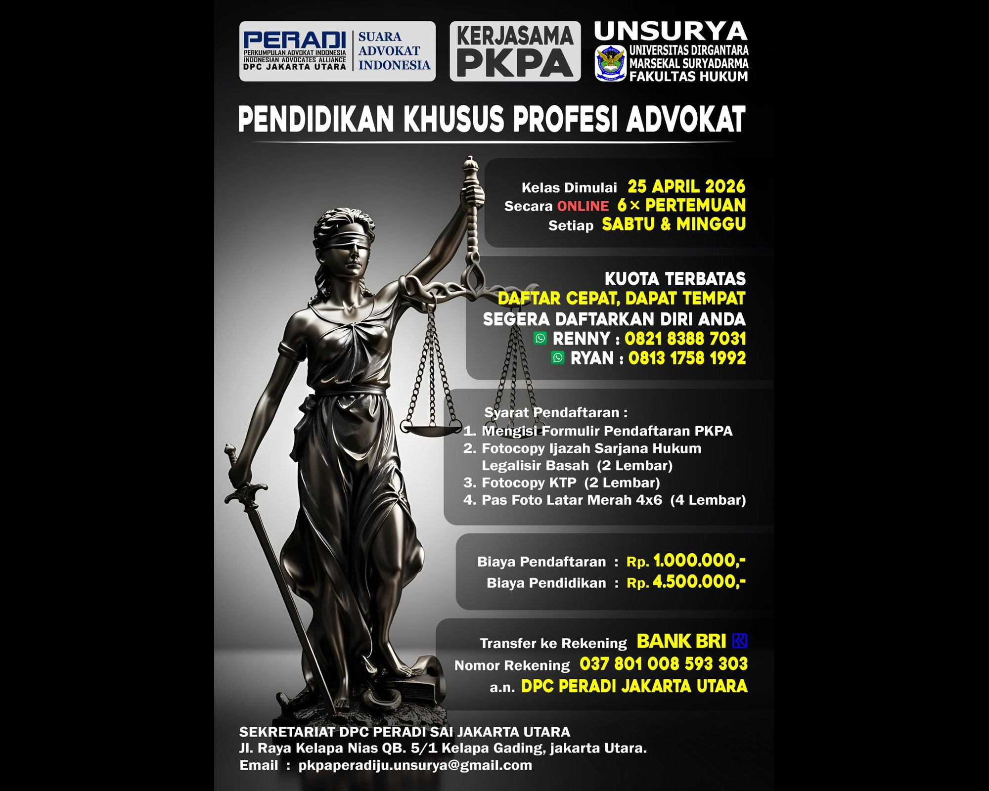 PERADI - 13 Apr 2026Pendidikan Khusus Profesi Advokat (PKPA) DPC Jakarta Utara - April 2026